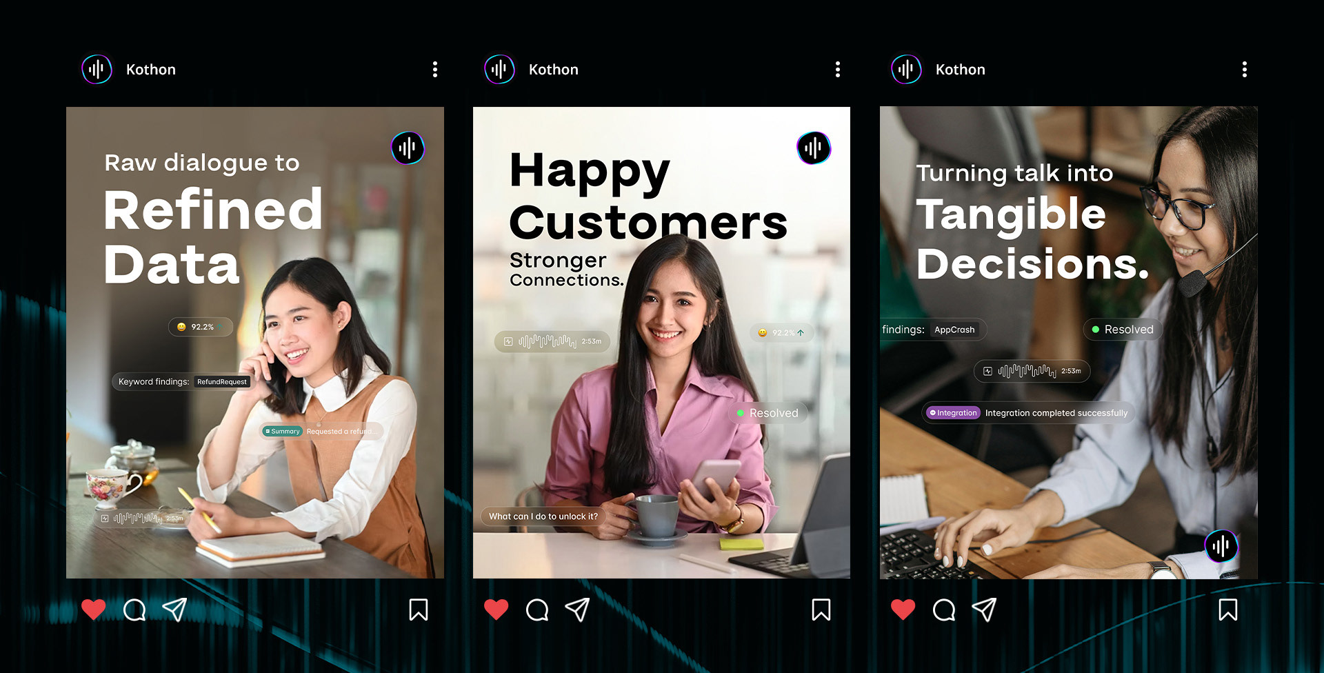 The logo takes inspiration from speech transformed into insight—the very core of Kothon AI.