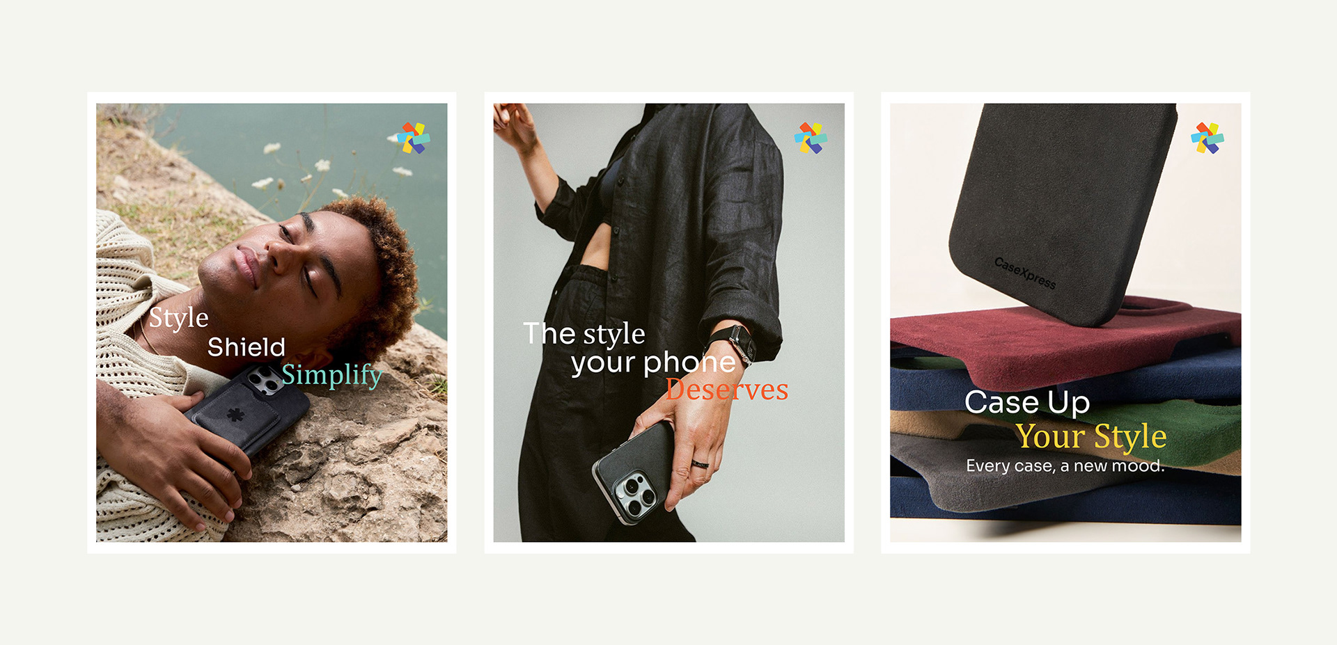 The icon mark takes direct inspiration from the silhouette of a phone case, arranged in a circular form to convey unity and connection. Each segment carries a distinct color, reflecting versatility, individuality, and the brand’s dynamic nature. Together, the mark communicates both function and lifestyle